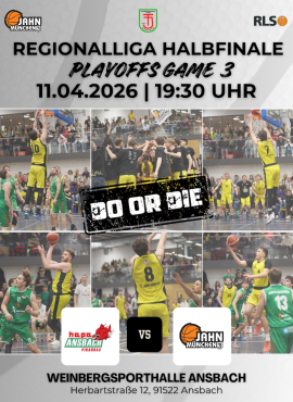 13.04 13.04.2026 21:03 von Armin Sperber Jahn-Herren schaffen Auswärts-Sensation TS Jahn München schlägt Ansbach 84:81 (24:22; 46:40; 62:67)Finale Spiel 1 am Samstag, 18.04. um 20h im Jahn mehr