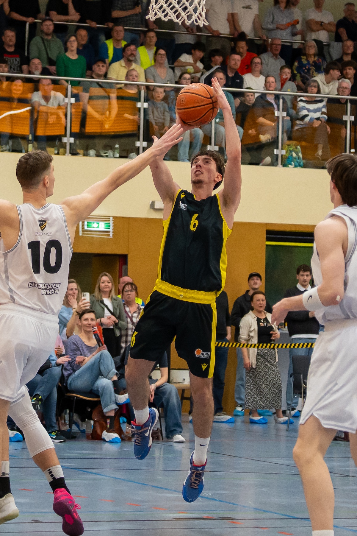 Im Schlussabschnitt mussten die Gäste jedoch immer wieder der hohen individuellen Qualität der Weimarer Tribut zollen, vor allem von jenseits der Dreierlinie waren die Thüringer diesmal überdurchschnittlich erfolgreich: insgesamt 13 von 31 Dreiern (42 %) fanden ihren Weg in den Korb. Wie bereits im Hinspiel wollten in den letzten zwei Minuten bei nur vier Punkten Differenz bei Jahn München die Würfe nicht fallen und die Gegner blieben bei den Freiwürfen fehlerlos, sodass auch dieses Spiel etwas zu hoch ausfiel.