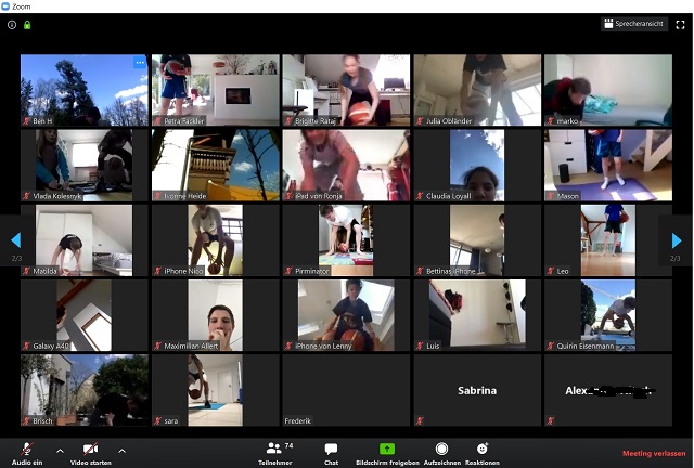 Bei der Premiere am Ostersamstag zeigten Jakob (Herren 1, Trainer JBBL), Verena (Damen 1, Fitness-Coach etlicher Teams) und Daniel (JBBL, noch kein Übungsleiter), eine dreiviertel Stunde lang, wie sich die #jahnfamily fit hält.