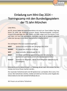 11.02 11.02.2024 07:48 von Sebi Wiederkehr Jahn München 1on1-Days Offenes Ferientraining für die Jahrgänge 2012/2013 mit wechselnden Schwerpunkten für alle Daheimgebliebenen. Infos inside mehr