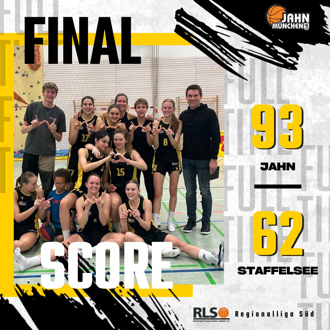 Allerlei Kuriositäten, diverse Blessuren und eine gebrochene Nase im Gepäck hatten Jahns Regionalliga Damen am späten Samstag-Abend nach ihrer Heimkehr aus Murnau. Beim dortigen ESV Staffelsee gelang es der Turnerschaft aus Münchens Osten allerdings auch die beiden zu vergebenden Tabellenpunkte zu behaupten. Nach einem über die gesamte Distanz hinweg sehr physisch geprägten Spielverlauf konnten sich die Gelb-Schwarzen zum Ende eines bunten & erfolgreichen Monats Oktober mit 93 – 62 durchsetzen.