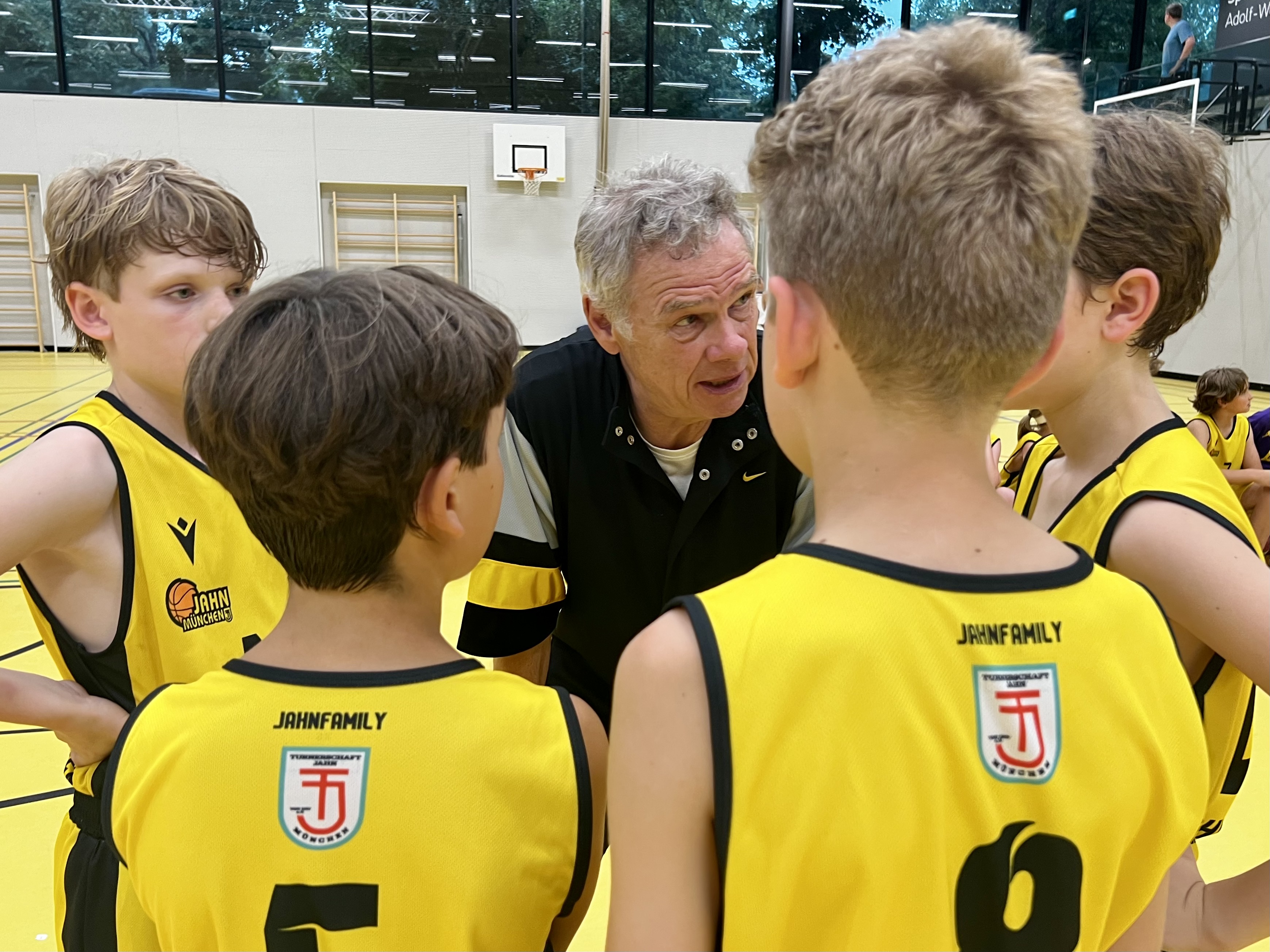 In einem spannenden Spiel ging es zwischen den Roten und Gelben hin und her. Kurz vor Schluss schien der Sieg der Jahnler bereits greifbar nahe, doch ein fahriger Ballverlust in den letzten Sekunden ermöglichte den Bayern einen 36:34 Sieg. Schade. Im abschließenden, nicht minder spannenden Spiel um Platz Drei konnten sich schließlich die Gastgeber mit 33:35 durchsetzen. Dennoch konnten alle Jahn-Jungs viel Spielzeit und Erfahrung sammeln. Gerade solche knappen und spannenden Spiele bringen die notwendige Erfahrung für die kommende U12-Saison.