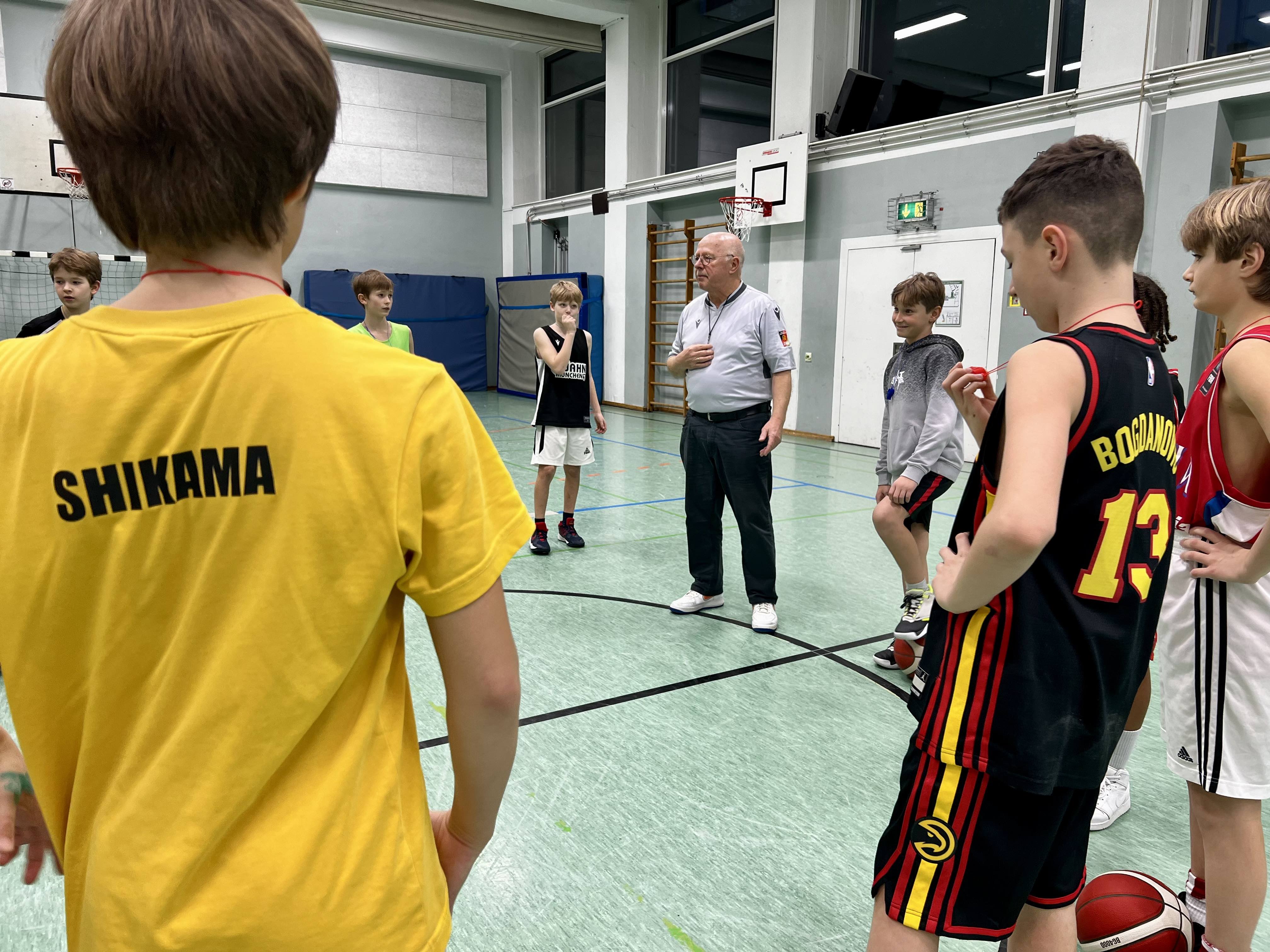 Ein weitere ganz wichtige Basketball-Erfahrung machte das U11-Team im Jahn-internen Schiedsrichter-Einstiegskurs. Unser erfahrener Schiedsrichter Andi Jäkel nahm sich die Zeit (und Geduld), den Nachwuchsspielern Grundlagen des Schiedsrichterwesens beizubringen und den Jungs eine völlig neue Perspektive auf das Spiel zu zeigen. Dabei stellten viele Kids fest, dass es zwar einfach ist, als Spieler „alles besser zu wissen“, aber gar nicht so einfach, als Schiedsrichter von aussen die dann richtigen Entscheidungen zu treffen.