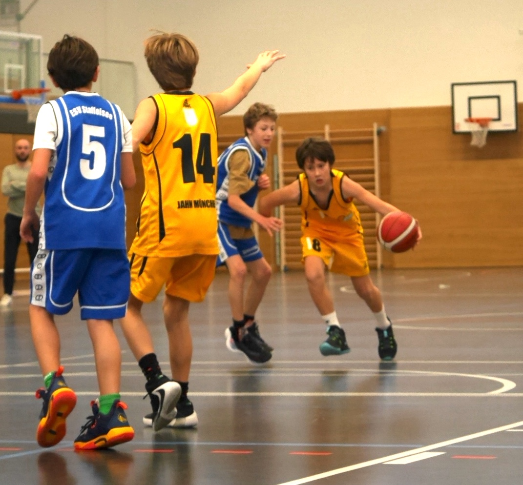 In der West-Gruppe hatten es die Nachwuchs-Jahnler dagegen häufig mit „älteren“ Teams zu tun, d.h. Teams, die insbesondere Spieler des älteren Jahrgangs (Jg. 2012) als Leistungsträger einsetzen. Gegen solche Gegner treten die U11er oft noch mit zu viel Respekt an, so dass es meist zwei, drei Achtel dauert, bis die Jungs merken, dass auch die älteren Gegner nur „mit Wasser kochen“. Manchmal reicht es dann noch zur Aufholjagd ( 69:61-Sieg gegen Staffelsee), manchmal nicht (bittere 88:42-Niederlage gegen Forstenried). Gerade in diesen umkämpften Spielen lernen die Nachwuchs-Basketballer wichtige Lektionen.