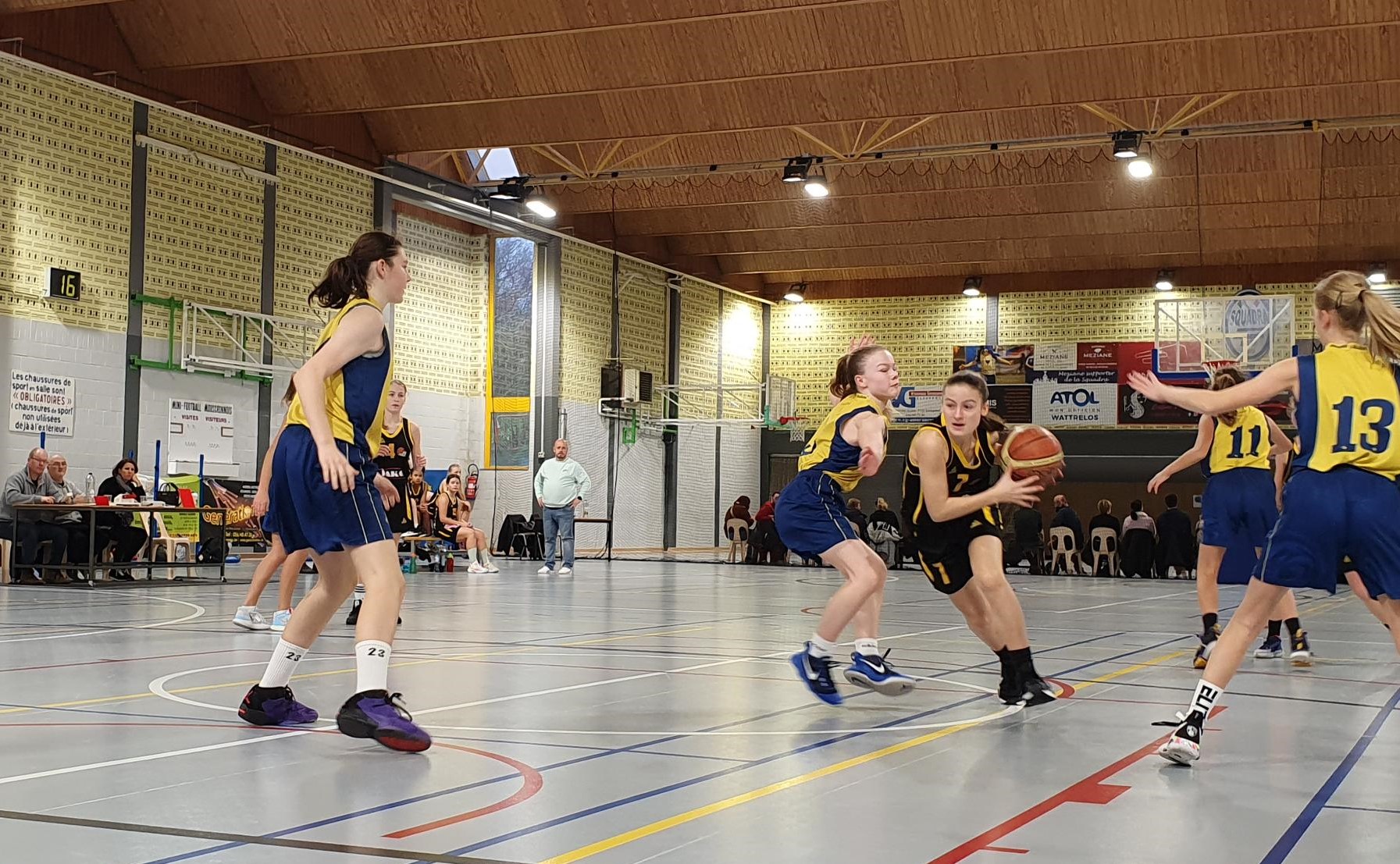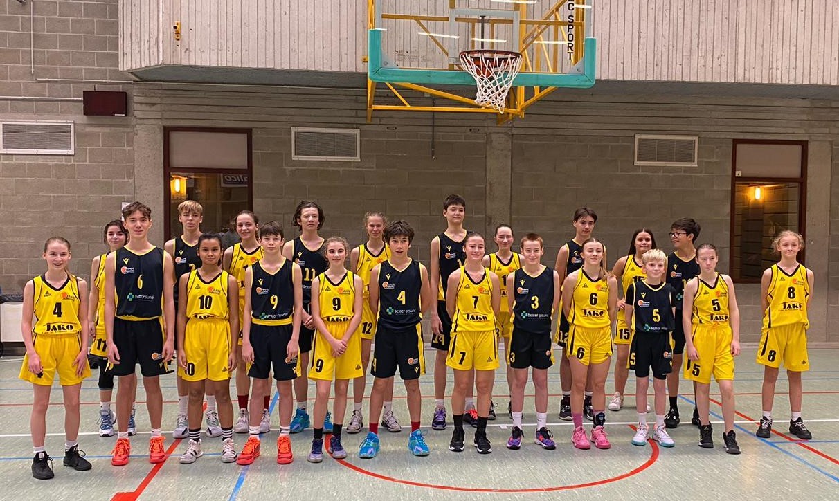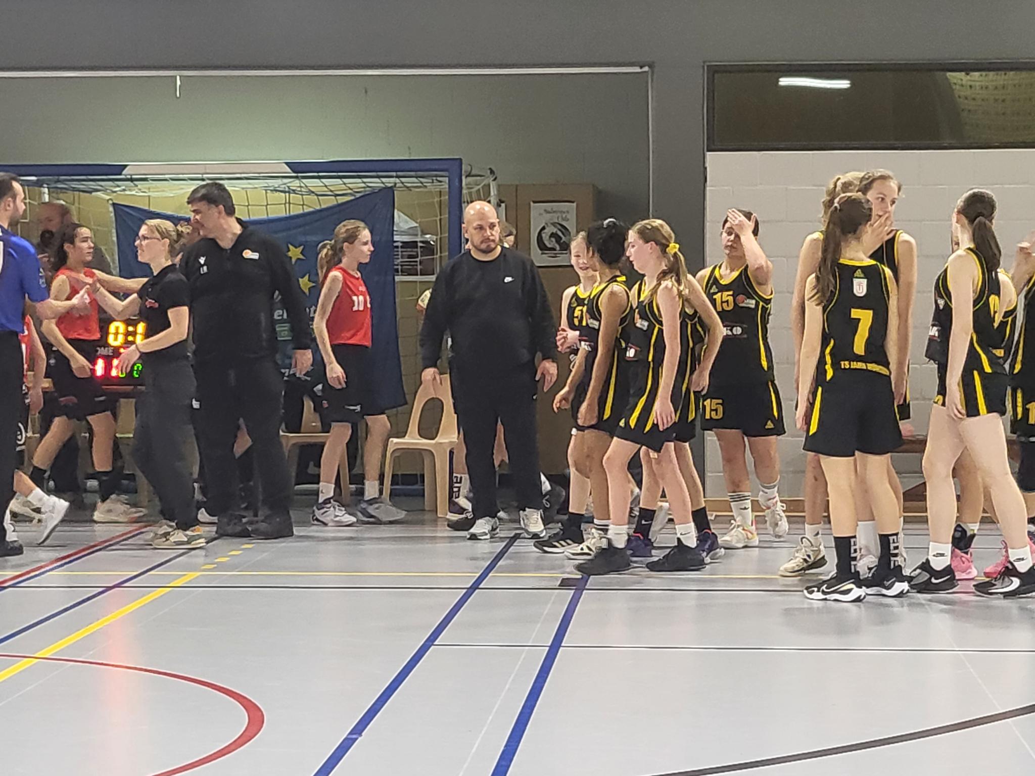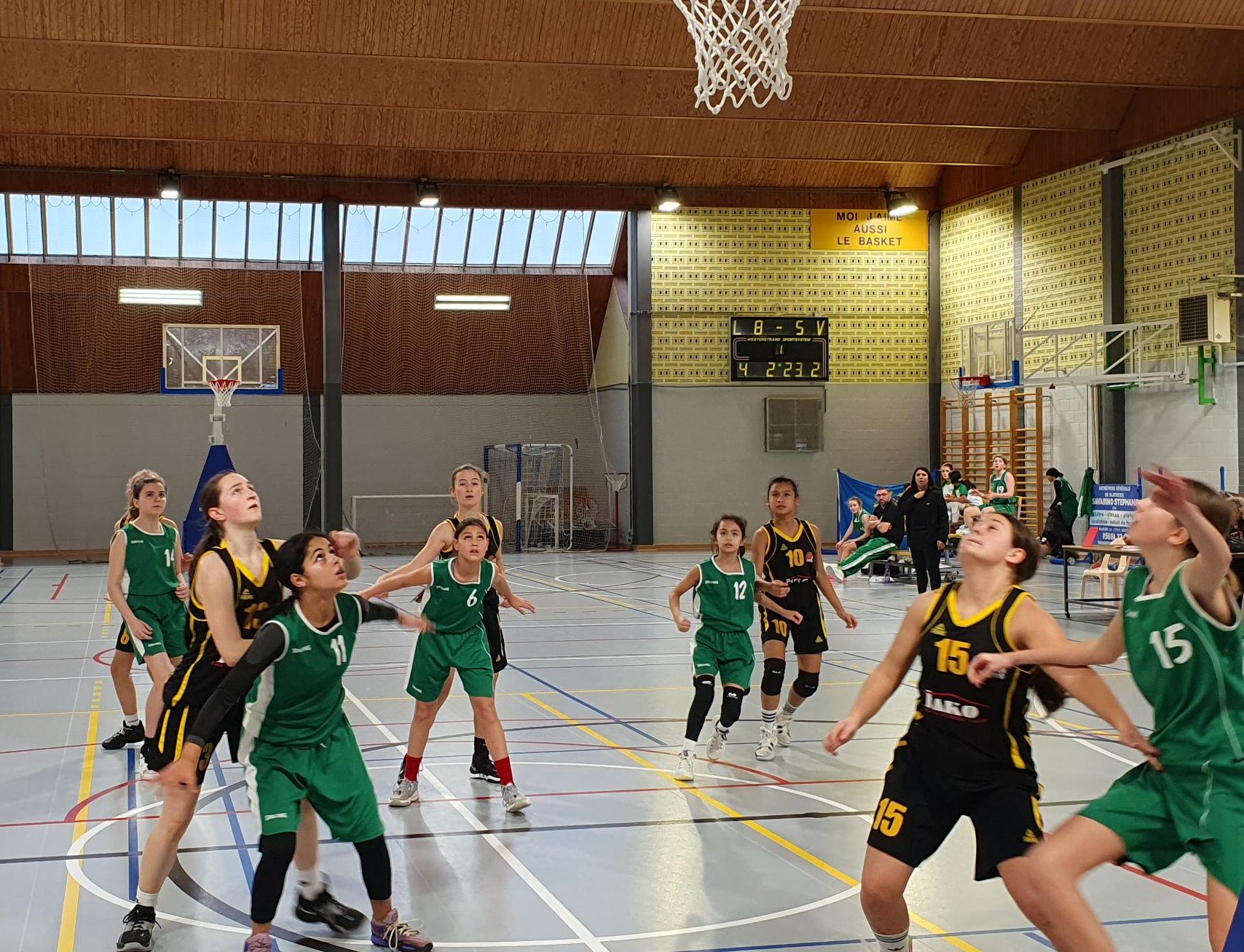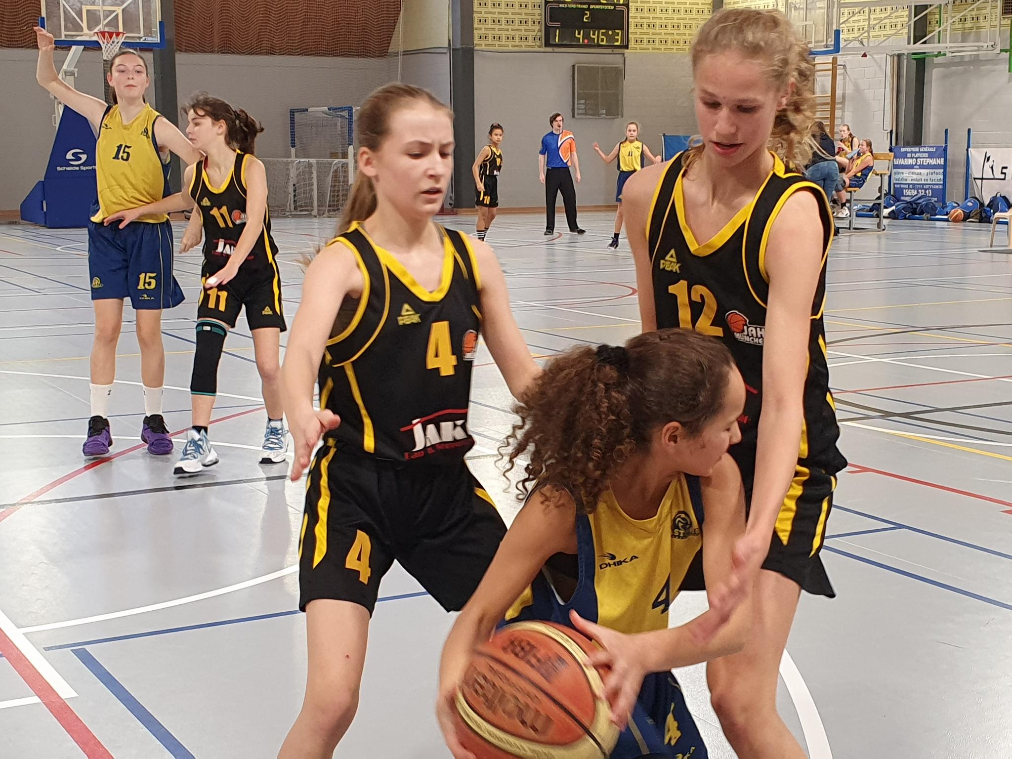 Am 2.Tag dann das letzte Gruppenspiel gegen die auch noch ungeschlagenen Mädchen von Castor Braines. Ein intensives Spiel entwickelte sich, letztendlich konnten wir uns aber in der 2.Halbzeit absetzen und das Spiel sicher nach Hause bringen. Elena immer wieder als Energizer von der Bank mit guten Aktionen in der Defense, Joana zeigte mehrmals ihren soften Touch beim Wurf. Und Leony sammelte fleißig Rebounds und konnte ihre meist größeren Gegnerinnen vor sich halten. Damit stand fest, wir sind abends um 19Uhr im Halbfinale gegen das lokale Team aus Waregem. Leider waren keine Shuttles verfügbar, so daß wir 4h in der Halle verbringen mußten, da das Wetter auch eher mäßig war. Trotzdem wurde die Konzentration wieder hochgefahren und es gelang ein guter Start ins Spiel. Leichte Führung für uns nach Viertel #1, ein paar Punkte Rückstand zur Halbzeit. Doch letztendlich noch zu viele leichte Fehler, die der Gegner clever ausgenutzt hat. Beim Stand von -20 wurde dann nochmal Spielzeit verteilt, mit -32 am Ende eine deutliche Niederlage.