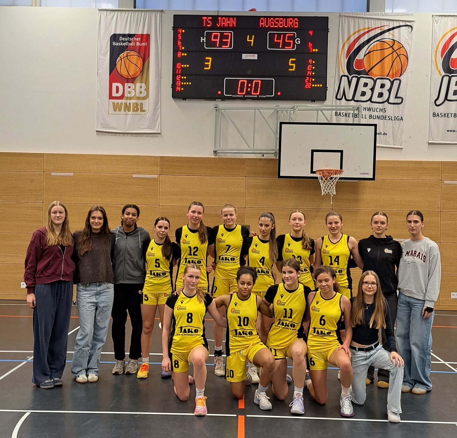 Entsprechend gut vorbereitet gingen die Jahn-Mädels in die Partie, das Ganze versprach Meisterschafts-Niveau! Das Auftaktviertel zeigte auf, dass beiderseits an der Defense noch zu arbeiten sei (25:17), dann aber kamen die Gastgeber immer besser in den Modus „fleißige, gelbe Bienchen“ und ließen viertelweise nur noch neun und vier Pünktchen zu, 72:30 der Zwischenstand nach dreißig Minuten, 93:45 am Ende.