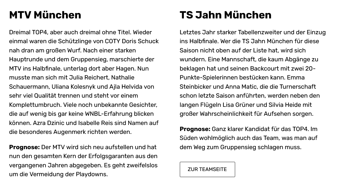 Der Einfachheit halber zitieren wir anlässlich des ersten Spieltags das WNBL-Department des DBB, das die aktuelle Münchner Szene beleuchtet: