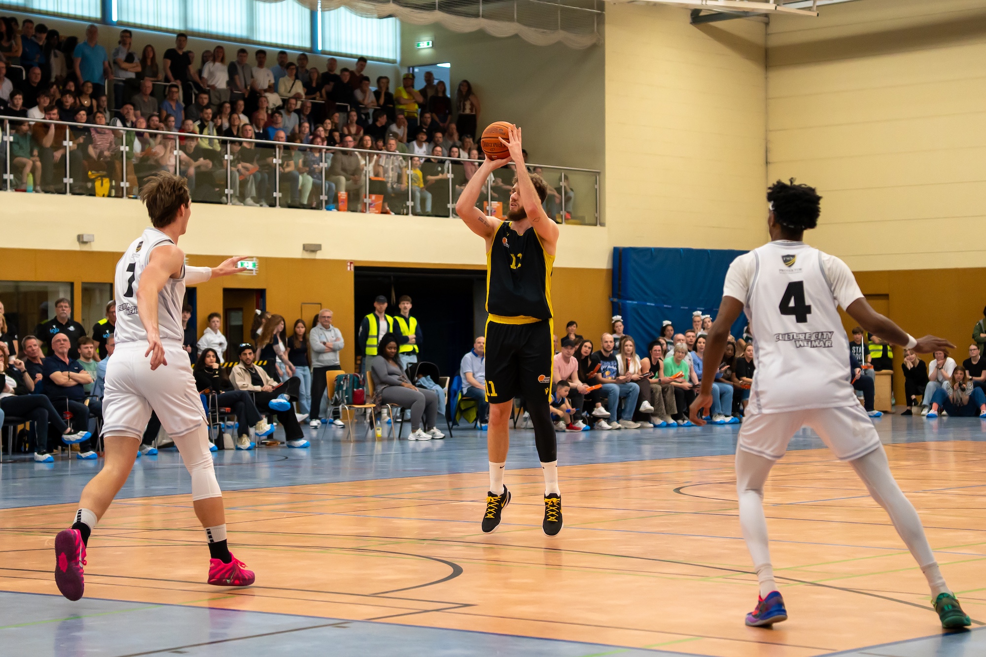 Im Schlussabschnitt mussten die Gäste jedoch immer wieder der hohen individuellen Qualität der Weimarer Tribut zollen, vor allem von jenseits der Dreierlinie waren die Thüringer diesmal überdurchschnittlich erfolgreich: insgesamt 13 von 31 Dreiern (42 %) fanden ihren Weg in den Korb. Wie bereits im Hinspiel wollten in den letzten zwei Minuten bei nur vier Punkten Differenz bei Jahn München die Würfe nicht fallen und die Gegner blieben bei den Freiwürfen fehlerlos, sodass auch dieses Spiel etwas zu hoch ausfiel.