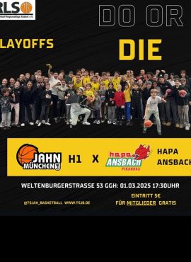 01.03 01.03.2025 12:08 von Timo Heinrichs Playoffbasketball im Jahn TS Jahn München empfängt im zweiten Spiel des Playoffviertelfinals die Ansbach Piranhas mehr