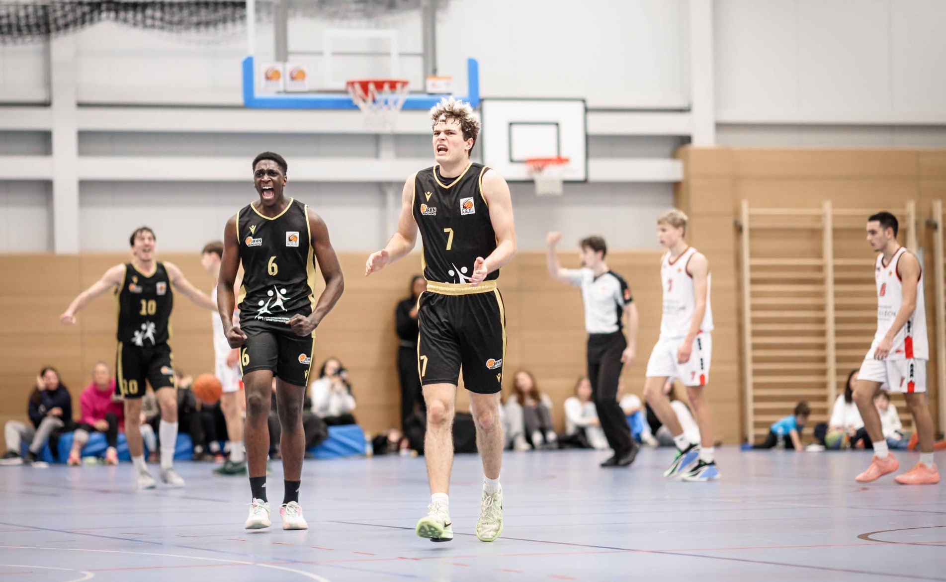 Das dritte Viertel glich dem ersten: Ost legte, angeführt vom überragenden Iliia Hohulenko (27 Punkte, 7 Assists) seinen sechsten Gang ein, baute die Führung abermals auf neun Punkte aus (59:50, 29. Minute), ging defensiv aber weiterhin übermäßig motiviert zu Werke. Mitte des dritten Viertels war das Spiel für Dzenis Hodovic gelaufen, ihm folgten im Schlussabschnitt drei weitere Spieler. Und Jahn? Die Zwuckels spielten einfach weiter, ließen sich von der Derby-Atmosphäre und von Läufen der Gegner kaum beeindrucken und fanden schließlich zurück ins Spiel. In der 35. Minute gelang der Ausgleich (64:64), in den letzten zweieinhalb Minuten übernahm man auch defensiv das Kommando und ließ kaum noch einen guten Wurf zu. Vorne war abermals Bennet Hein zur Stelle, der mit einem Dreier zum 71:76 für ein emotionales Statement sorgte. Der Rest steht im ersten Absatz: Jahn hielt hinten den Laden dicht und wurde dann zügig gefoult, zeigte an der Freiwurflinie aber Nervenstärke.