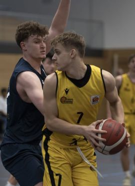04.03 04.03.2024 11:20 von Armin Sperber NBBL siegreich in Hanau Mit einem feinen 63:71 (38:36) Auswärtserfolg kehren Jahns Bundesliga-Junioren aus Hanau zurück – hier kommen drei Dinge, die diesmal gut funktioniert haben mehr