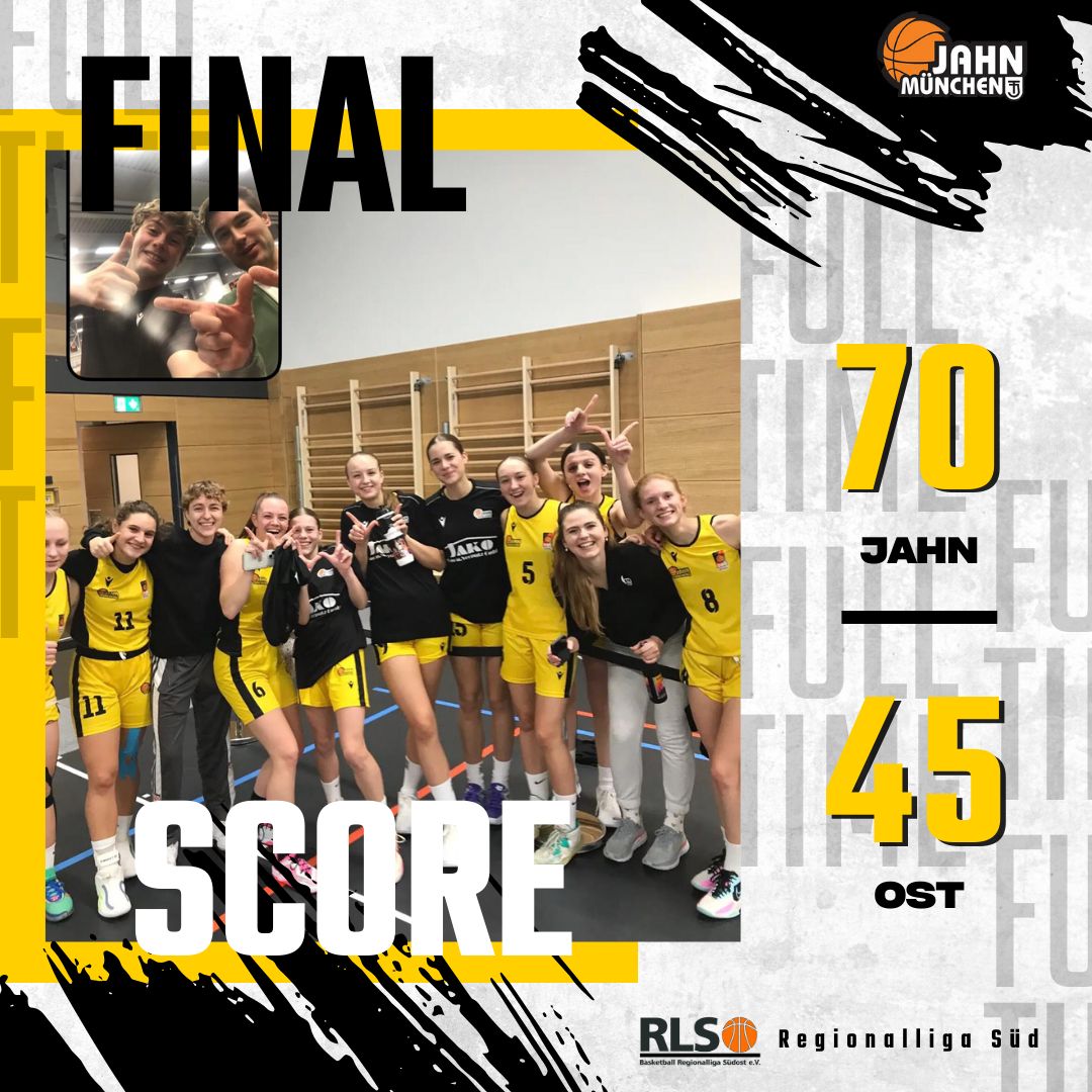 Begonnen hatte die Partie direkt recht punktearm, die zweit-platzierten Damen von Trainer Markus Ovadya erspielten sich die erste Führung (2 – 6) und konnten diese einzig aufgrund einiger verworfener Freiwürfe nicht deutlicher ausbauen (10 – 11). Aus Sicht der Gastgeberinnen in der Regel zu einfach gelang es dem erfahrenen Team des TSV die Jahn-Verteidigung ein ums andere Mal auszuspielen. Manch einfache Abschlüsse verfehlten jedoch ihr Ziel oder den Gelb-Schwarzen blieb lediglich das Foul als letztes Mittel der Korbverhinderung. Ganze acht Mal durfte München Ost in den zwei Spielminuten vor der Pause noch an die Linie treten.