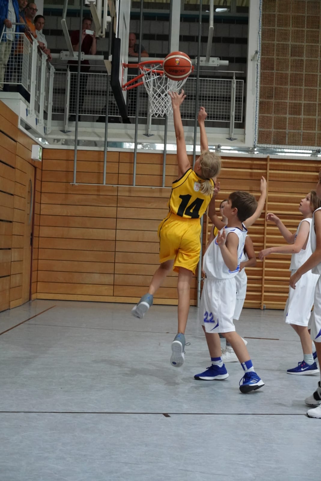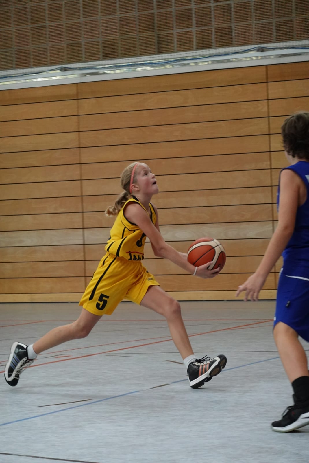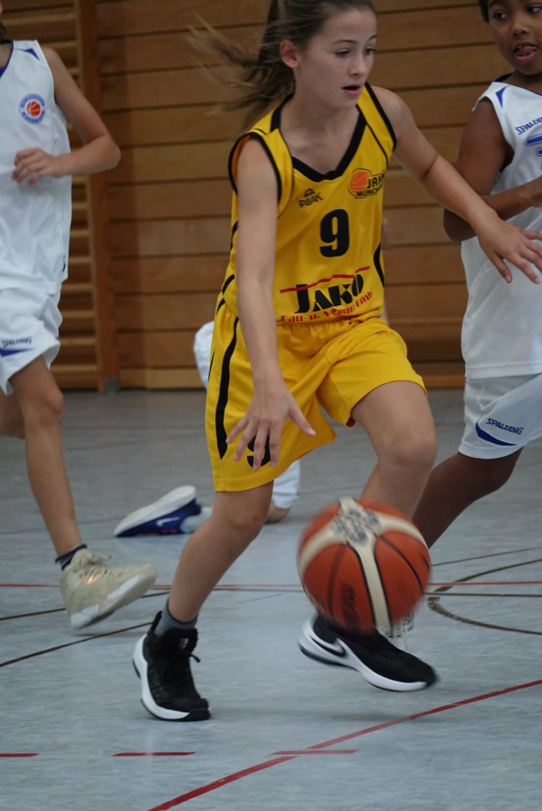 Es wurde in zwei Gruppen a 5 Teams gespielt, jeder gegen jeden. Die Freisinger Mädls und wir vom Jahn waren die einzigen weiblichen Teams am Start zwischen 8 weiteren Jungs-Teams aus der Bezirks- bzw. Kreisliga. Los ging es gegen Ismaning und der Start wurde komplett verschlafen. Mit 10:26 gab es eine recht deutliche Niederlage, was Captain Anna und Coach Lars zu einigen deutlichen Worten nach Spielende verleitete. Alle legten nun eine Schippe Mut und Engagement drauf, so daß das zweite Spiel gegen München Basket mit 14:12 gewonnen wurde. Im dritten Spiel warteten dann die Jungs vom FC Bayern und es wurde ein heiß umkämpftes Match. Die Bayern hatten recht schnell die Teamfoulgrenze erreicht, so daß die Jahnler zu einigen Punkten kamen, die dann letztlich den Ausschlag zum 13:10 Sieg geben sollten. Großer Jubel im Team, jetzt waren alle hellwach und bis in die Haarspitzen motiviert.