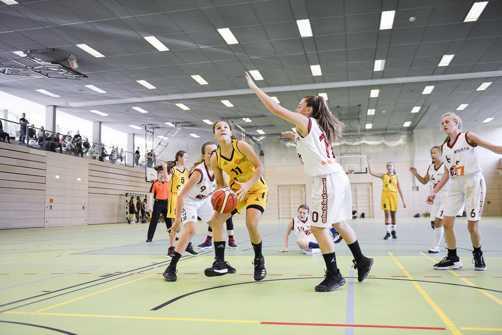 Nun ist das Turnier Geschichte und wir wollen der BSG Ludwigsburg zum Turniersieg gratulieren. Herzlichen Glückwunsch! In 2 Spielen die nicht hätten spannender sein können, verwiesen sie Alba Berlin (nach Sudden death!) und das Regioteam Stuttgart (zwischenzeitlich führte Stuttgart knapp zweistellig im Spielverlauf) auf die Plätze 2 und 3. Spannend machte es Jahn München, die in jeder ersten Halbzeit gut mithielten, denen dann jedoch die Tiefe fehlte um die 3 Spitzenteams an Siegen zu hindern. Tolle Szenen kamen auch vom Würzburger Team, die wie unsere Mädchen auch sehr früh in der Vorbereitung stecken und somit den eingespielteren Teams den Vortritt ließ. Alle Coaches betonten die Wichtigkeit des aktuellen Standes, den sie nun von ihrer Mannschaft wussten.