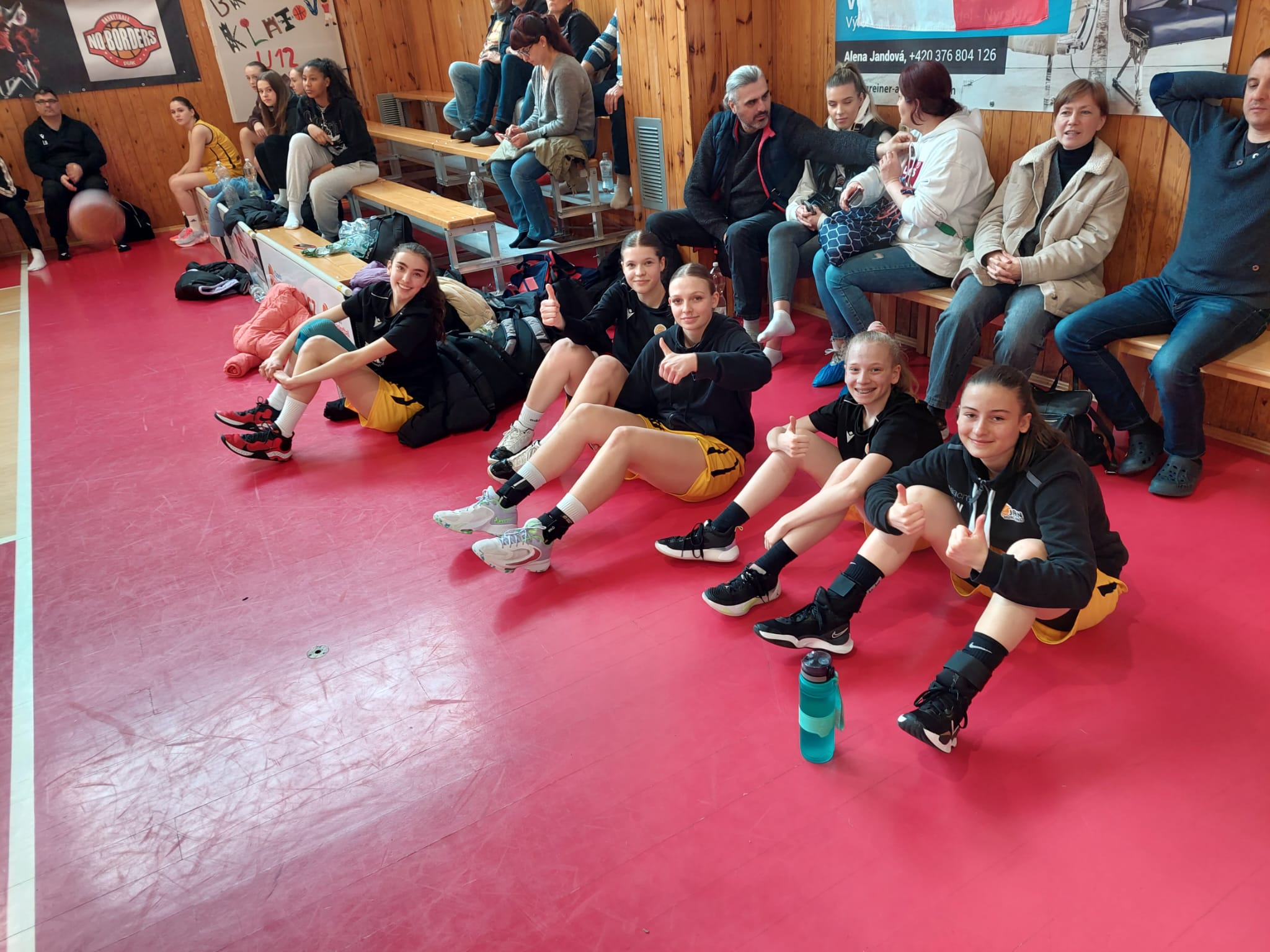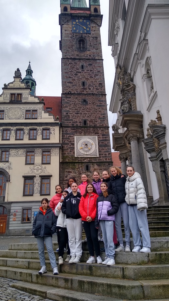 Gründonnerstag morgens um 8Uhr trat eine Wagenkolonne die Reise an und alle schafften es pünktlich zum ersten Spiel. Beide Teams spielten zur gleichen Zeit gegen Teams aus Tschechien, auch eine Googlerecherche verriet wenig über die Stärke der Gegner. Mit jeweils einem 10er Kader ging es in die Halle und die u14w konnte mit Coach Lucas an der Seitenlinie ihr Auftaktspiel überzeugend mit 54:16 gegen Sojky Pelhrimov gewinnen. Die u16w tat sich gegen Olumouc schwer, doch in der zweiten Halbzeit kam man besser ins Spiel und gewann 51:39. Danach scoutete man noch etwas die nächsten Gegner, ehe es nach dem Abendessen in der Schulkantine ab in unsere Pension ging. Diese lag etwas außerhalb, so daß die Eltern einen Shuttleservice einrichten mußten.