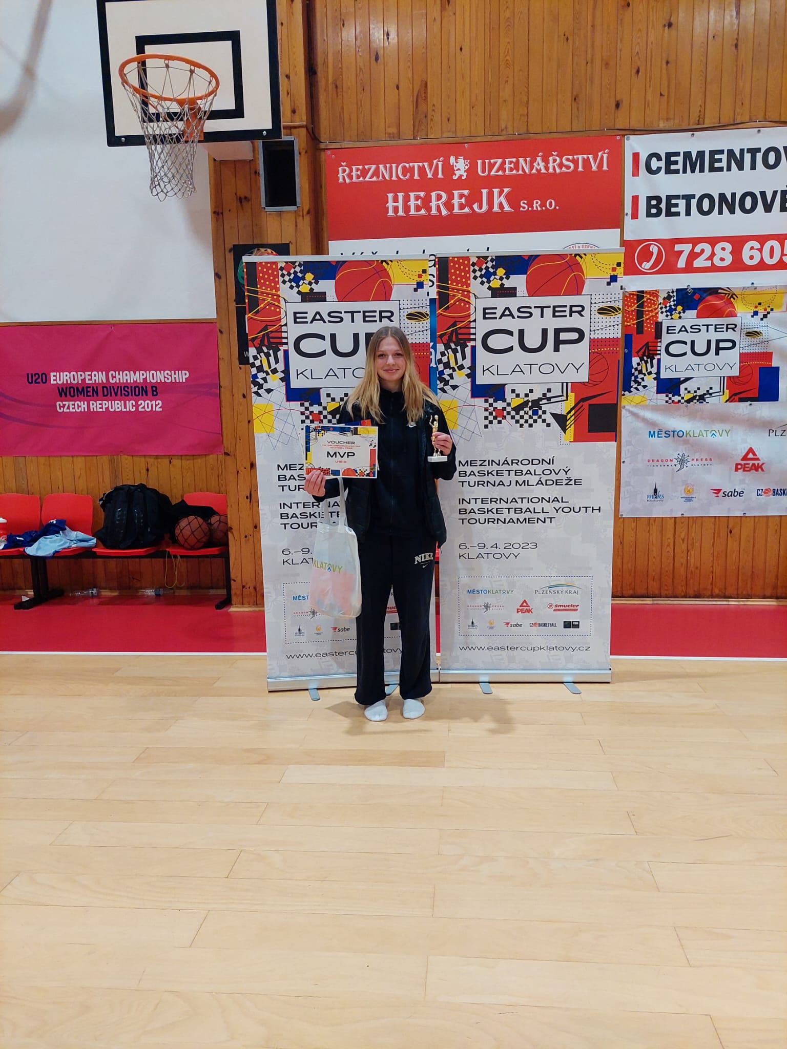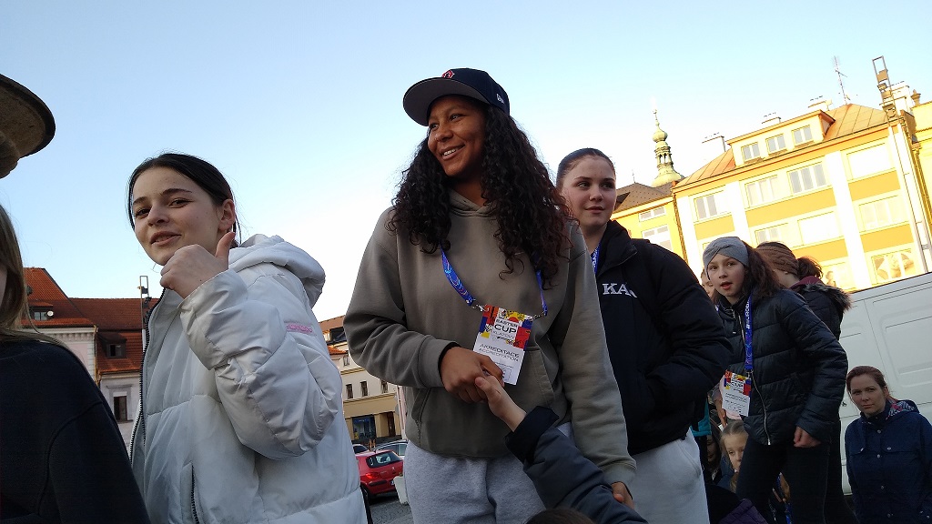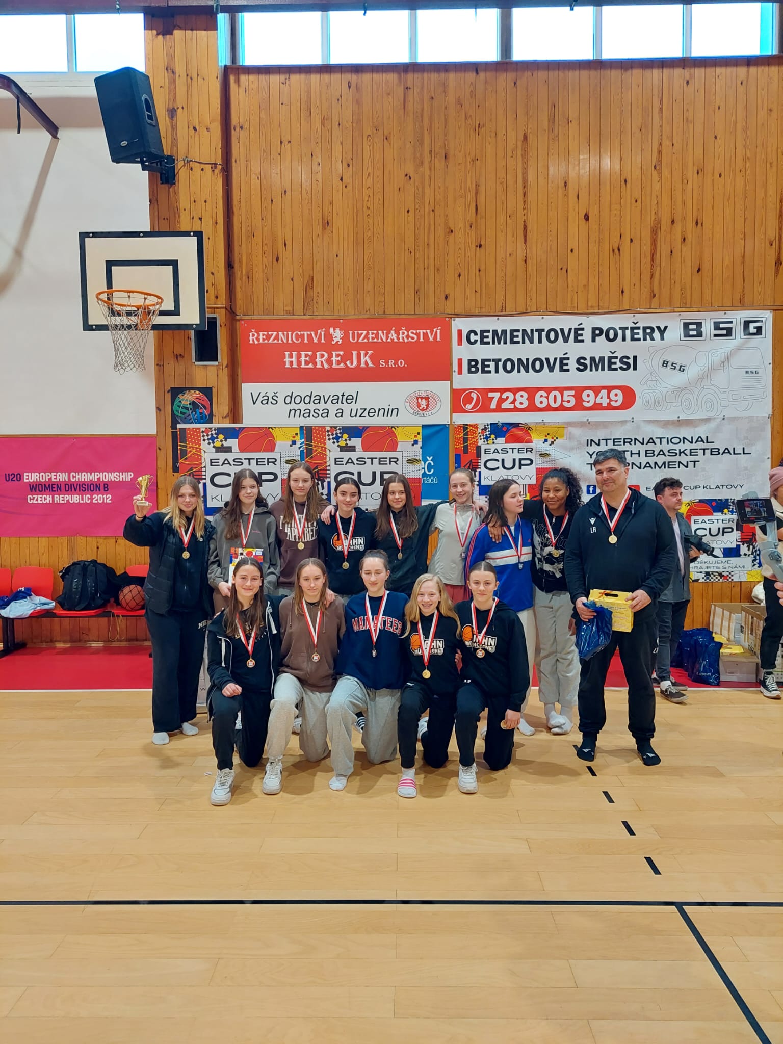 Am finalen Tag startete dann die u14w ins Spiel um Platz 3 gegen Vlcice Zdar. Mit diesem Team teilte man sich die Pension, man kannte sich also schon vom Frühstücksbüffet beim Kampf um den Platz am Toaster. Unter lautsctarker Unterstützung der u16 Mädls gaben die u14er alles. Wieder ein enges Spiel, wieder viel Kampf auf dem Boden. Mit 35:44 ging das Spiel verloren aber alle konnten auf ihre Leistung stolz sein. Das Team hatte bis zur letzen Sekunde gekämpft. Damit ging es rüber zur Haupthalle und dem u16 Finale. Der Gegner war wieder Olomouc, die man am 1.Tag schon besiegt hatte. Aber der Kader etwas dünner, die Beine schon etwas schwerer, es entwickelte sich ein spannendes Finale unter lautem Getrommel der Gegnereltern. Bis zur Halbzeit lag man einige Punkte zurück doch irgendwann machte es klick und die Pressverteidigung erzeugte einige Ballgewinne. Nachdem unser Team eine leichte Führung herausspielen konnte, wurde es nochmal spannend. Zwei Spielerinnen hatten die maximalen 4 Fouls und mußten das Spielfeld verlasssen, eine dritte knickte um. Auf einmal hatte man keine Auswechselspieler mehr. Doch die Jahnmädls sind zu clever, um sich solch ein Spiel noch aus der Hand nehmen zu lassen. Mit 63:46 gewonnen, Turniersieger! Erlöst vielen sich Uliana, Vlada, Ajla, Julia, Isabelle, Lisa, Sofia, Alicia und Priscilla in die Arme! Julia konnte sich auch verdient den MVP Titel sichern, Ajla wurde zusätzlich ins All Star Team berufen.