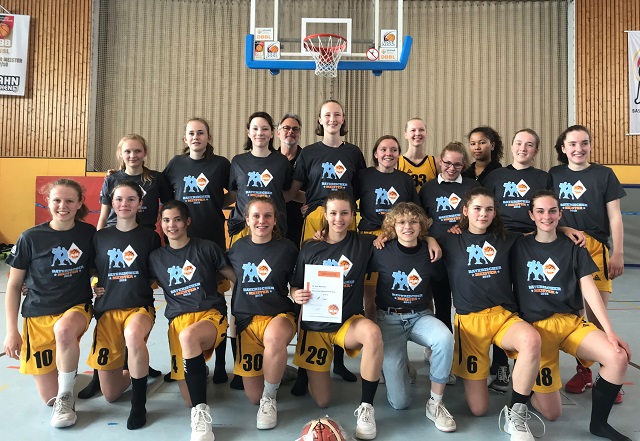 Rosenheim war dann, trotz Enttäuschung und kleiner Rotation, der gewohnt quirlige Gegner, der volle Aufmerksamkeit braucht, weil man sonst zu viele Überraschungen erlebt (vor sechs Wochen waren die Jahnlinge im Bayernliga-Spiel böse unter die Räder geraten und hatten den Tiefpunkt der Saison wegstecken müssen!). Diesmal aber profitierte Jahn von der mit vielen Talenten gefütterten Bank, siegte locker mit 80:41 (Talena Fackler und Fiona Rosborough 14, Olivia Norga 10) und brachte das Turnier souverän und damit die Meister-Shirts 2019 nach Hause.